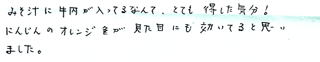 お味噌汁に牛肉を入れたものは珍しく是非、 伊万里牛の旨みを味わってください。