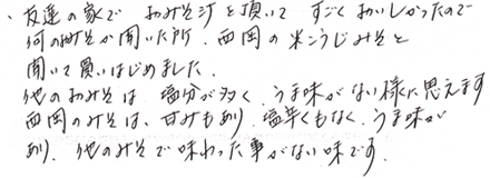 西岡のみそは地元の皆様に愛されるように「甘み」と「素材の旨み」 を活かした「伊万里の味」にこだわっております。